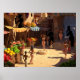 Eine lebendige Szene in einem lebhaften alten ägyptischen Marktplatz voller farbenfroher Stände mit einer Fülle von Obst und Gemüse. Kaufleute und Shopper beschäftigen sich mit lebendigem Handel, während ein Tänzer in der Mitte auftritt und das Publikum fasziniert. Die Sonne strahlt ein warmes Licht über die lebendige Atmosphäre und hebt die reiche Kultur und das tägliche Leben der Zeit hervor.