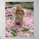 Foto des Niedlichen Spitzes namens Marley sitzend im Feld der rosa Blume.