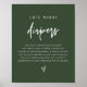 Diese spätabendliche Windeln Baby Dusche Spielvorlage verfügt über einen edgy handgeschriebenen Schriftart mit einer waldgrünen und weißen Farbkombination. Verwenden Sie diese Vorlagen, um alle Formulierungen, Schriftart, Schriftart- und Hintergrundfarben zu bearbeiten, um sie Ihrem Veranstaltungsstil anzupassen. Das einfache Design ist das perfekte Babyduschzeichen für die moderne Mutter.
