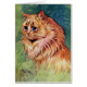 Eine langhaarige Orangen- oder Marmeladenkatze mit einem niedlichen Ausdruck von eine Vintage Postkarte 1907 betitelten "gekräuselten Federn" durch den großen Katzenkünstler Louis Wain.