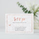 Dieses stilvolle RSVP-Kartendesign zeichnet sich durch eine schicke Kupfertypografie mit einem marmorstrukturierten Hintergrund aus. Mehr passende Artikel in meinem Shop zur Vervollständigung Ihrer Hochzeitssuite.