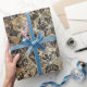 Eine dunkle Marmorstruktur in Schwarz und Grau mit goldenen Adern kombiniert mit einer Imitat goldenen Folie strukturiert geometrisch.