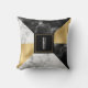 Moderne mit Monogramm Akzente werfen Kissen in einem geometrischen Muster aus goldfarbener Tonfolie, weißem Marmor und schwarzem Marmor. Ein schwarz-goldenes Quadrat, in der Mitte des Kissens, hat einen weißen Single Buchstaben Monogramm bereit, um zu personalisieren. Liebliche Wohngestaltung und macht eine tolle Geschenkidee.