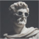 Eine weiße Marmorbüste eines alten griechischen Mannes mit Sonnenbrille