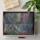 Marmorfarbene abstrakte Farbmuster in hellen Farbtönen wie Cyan-Blau, Rot-Orange, Hot-Rosa, Schulbusgelb auf Schwarz.