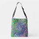 Marmorkalkgrün und Lila Abstrakter Retrowirbel Tragetaschen Mit Langen Trägern