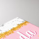Stilvoll, schick graue und weiße Marmorfliesen mit rosa Rahmen in vergoldetem Imitat-Glitzer. Im Design wird eine benutzerdefinierbare Namensvorlage angezeigt.