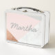 Modernes Imitat marmort, Rosengold, Grau und errötet rosa Mittagessenkasten. Mit Raum für einen Namen. Hintergrundfarbe und Textfarbe können geändert werden. Teil einer modernen Sammlung.