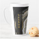 Personalisierte große latte Tasse mit schwarz-goldfarbenem Marmor. Die Vorlage ist für Sie Set, um Ihren Namen hinzuzufügen, in modernen fett gedruckten Typografie, vertikal auf einer Seite der Tasse auf einem halb-undurchsichtigen dunklen Panel.