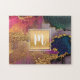 Ein funkelnd, Imitat goldfarbenes Quadrat mit einer Schriftzeichen-Monogramm-Initiale überlagert einen reichen, goldfarbenen, marineblauen, Jägergrün, Rosa und lila Aquarellhintergrund auf diesem eleganten, trendigen, gürtelhaften, modernen, monogrammatikalischen Puzzle. Ein personalisiertes Geschenk für einen ganz besonderen Geschmack! Kommt in eine besondere Geschenkboxen. Geben Sie einfach die erste Ihrer Wahl ein und Sie können dieses monogramm-Puzzle ganz einfach personalisieren. Bitte schicken Sie mir eine Nachricht mit Fragen oder Wünschen.