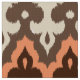 Stoffe in marokkanisch inspirierten Damastmustern, in positiver/negativer Fleur-de-lis-Form miteinander verbunden, mit gestreifter, Ikat-gewebter Textur - leichter Taupe, mittel- und dunkelbraune Schokoladenbraun, Korallenorange