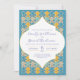 Moderne marokkanische, blaue, gelbe und goldene Kacheln, marokkanische Kunst personalisierte Hochzeitseinladung. Dieses Produkt kann leicht personalisiert werden. Wenn Sie Hilfe bei der Anpassung des Produkts benötigen oder passende Produkte benötigen, kontaktieren Sie mich bitte über Zazzle.