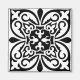 Marokkanisches inspiriertes Fliesenmuster mit polierter Keramik-Optik - weißes Muster mit schwarzem Hintergrund