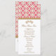 Klicken Sie auf die Schaltfläche Anpassen, um diese elegante und wunderschöne französisch-marokkanische inspirierte Menükarte mit einer sich wiederholenden rosa Fuchsia und goldfarbenen geometrischen Mustern Design und goldfarbenen blumigen Schnörkeln anzupassen. Diese luxuriöse Menükarte eignet sich hervorragend für alle formalen, exotischen, marokkanischen, arabischen Nächte oder Aladdin Brautparty, Hochzeit, Babydusche, Paardusche, Verlobung oder Jubiläum Party. Die Rückseite kann mit Ihrem Event-Namen personalisiert werden. Kunst und Design © Chrissy H. Studios, LLC. Alle Rechte vorbehalten.