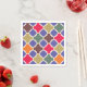 marokkanische Mosaikmuster Design Servietten, die den Geschmack Marokkos zu Ihrem Esstisch bringen. Dieses Muster ist in Blau, Rot, Kamelbeige, Orange und Grün gehalten.