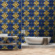 Diese Tapete zeigt ein marokkanisches Kacheldesign in königsblau und gold mit aufwändigem Scrollwork und goldenen Akzenten. Das symmetrische Motiv spiegelt maurische architektonische Einflüsse wider und schafft einen verzierten und strukturierten Look. Der tiefblaue Hintergrund kontrastiert mit reicher Goldverzierung für eine auffallende, dekorative Ästhetik. Ideal für die, die in marokkanischem und mediterranem Stil gezeichnet sind, die Inneneinrichtung ist von höchster Eleganz geprägt, und die Wände sind mit detailreichen Mustern geschmückt. Ideal für eine eklektische Wohnzimmerakzent Wand oder eine Brennwand in einem boho Schlafzimmer. Stellen Sie sich das in einem Raum mit einem Kamin vor, der im Feuer glänzt!