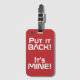 Marokko Nationalflagge Funny Patriotic Gepäck Tag mit den marokkanischen nationalen Flaggen Farben, die die Vorderseite des Tags bedecken. Witziger Text "Legen Sie es zurück! Es ist MINE" ist über die Flaggenfarben geschrieben. Der Text kann mit der Funktion "Anpassen!" vollständig angepasst werden. Die andere Seite des Tags ist für Ihre Informationen reserviert. Dieser super spaßige Marokko Gepäcktag ist der perfekte Begleiter für Ihre Reisetasche und das schöne Geschenk für jeden Anlass. © CountriesOfTheWorld