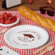 Die Ausrüstung der Graduationspartei. Maroon Adventure fängt Abschluss Paper Teller an. Lass das Abenteuer beginnen! Maroon und weiße Farben.