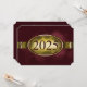 Blumendesigns, die den Knopf auf einem goldenen Band umgeben, das Blumenmuster hat. Maroon bewölkt Hintergrund. Auf der Rückseite der Karte befindet sich ein Hintergrund mit goldener Schrift für die Graduierungsankündigungen.