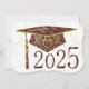 Blumendesigns auf Graduierdeckel, Hintergrund und Jahr. Maroon Graduationskappe auf weißem Hintergrund. Der Rücken hat einen goldenen Hintergrund mit goldener Schrift für die Einladung zur Abschlussfeier.