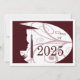Eine Silhouette einer jungen Dame in ihrer Kappe und in ihrem Kleid. Im Hintergrund werden Blumendesigns verwendet.