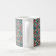 Eine schicke Kaffee-Tasse mit weißer Keramik im Ethnostil, Aquamarin, Maroon und Beige mit Motiven und Chevrons der Blume. Als Teil der Posh & Painterly 'Boho Bazaar' Kollektion kann dieses Muster leicht angepasst werden, indem die Richtung oder der Maßstab der Musterfliese für ein völlig anderes Aussehen geändert werden.