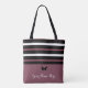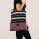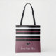 Eleganter, breiter Maron, schwarz-weiße Streifen bedecken die Oberseite dieses Tote Bag, während der Boden ist Maron, mit einer kleinen Schmetterling-Silhouette und Platz für Ihren Namen. Sehr schön und perfekt für die Arbeit, die Schule oder den Einkauf.