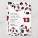 Diese niedliche Fußball-Party Einladung für ein Geburtstag- oder Mannschafts-Party umfasst Gruppen von Maronen, schwarz-weiße Fußbälle oben und unten Ränder auf der Vorderseite und einen Single-Cluster auf der Rückseite der Einladung - die Party-Details auf einem weißen Hintergrund anpassen - von katz_d_zynes