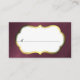 Hübsche Hochzeitsempfang-Platzkarten in Maronfarben, im Hintergrund mit einer Damast-Grafik. Ein goldener Tonscrollstuhl mit cremefarbenem Textbereich für die Namen Ihrer Gäste. Schöne Namenskarten für die Sitze, die Sie für die Hand schreiben Ihre Gäste Namen auf.