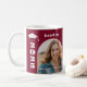 Moderne bordeauxrote Foto Abschluss Tasse mit dem Foto des Grades in der Form eines Bogens, mit Klasse des Jahres und dem Namen Ihres Absolventen. Eine Tasse ist ein großartiges Gradgeschenk für Absolventen von High School, Uni Absolventen oder Absolventen von Graduiertenschulen.