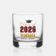 Customize your own maroon and gold Class of 2026 graduate whiskey glass gift for a college graduation party. Cool varsity letters for the year on a great custom commemorative keepsake for university seniors.