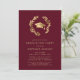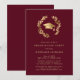 Maroon Gold Grad Cap Wreath Chic Graduation Party Einladung