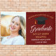 Dieses elegante Senior-Portrait Graduiertenbanner mit seinem schicken, weißen Drehbuch auf bordeauxrotem Hintergrund neben dem Foto Ihres Uni- oder Highschool-Absolventen für die Senior-Klasse von 2025. Passen Sie dieses Maroon-Banner mit Ihrem Foto, Namen und Klasse in Goldschrift unter der schönen Kalligraphie für Ihre Feier an.