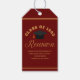 Ein klassischer Wiedersehen-Gastgeschenk-Tag in schicken Maronen und Gold für eine High School, Uni oder Universität. Passen Sie Ihre Hausgeschenke mit Ihrem Schulnamen und schließ-Klasse unter der eleganten Kalligraphie für eine großartige personalisierte Alumni-Festdekoration an.