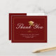 Send an elegant graduation thank you postcard to your family and friends to thank them for their support featuring an illustration of a graduation cap on the front with a classic white script on a maroon background which reads. "Thank you" with your name, school, and class/year below to personalize accented by a gold flourish divider. The back of the postcard has a custom message and signature. Designed by ©Susan Coffey.