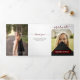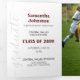 Elegant script kündigt Ihren Absolvent über Ihr Lieblings-Senior-Foto an. Blockieren Sie Ihren Namen auf der Vorderseite, und alle Zeremonie Details innen zusammen mit zwei weiteren Bildern. Platz auf der Rückseite für eine Danksagung an Freunde und Familie. Design in den Schulfarben Rot, Orange, lila, Grün, Blau, Bronze, Maron und Schwarz. Matching-Produkte verfügbar.