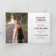 Elegant script kündigt Ihren Absolvent über Ihr Lieblings-Senior-Foto an. Blockieren Sie für ihren Namen auf der Vorderseite, und alle Zeremonie Details im Inneren zusammen mit einem anderen Foto. Zurück schließt Platz ein, um ihre zukünftigen Pläne weiterzuleiten oder eine Danksagung zu erhalten. Design in den Schulfarben Rot, Orange, lila, Grün, Blau, Bronze, Maron und Schwarz. Matching-Produkte verfügbar.