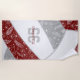 Dieses spaßige Volleyball-Handtuch zum Thema Beachvolleyball zeichnet sich durch das realistische Bild eines abstrakt überdimensionierten Volleyballs aus, der mit Maroon-, Grau- und Weißtafeln, Pisleys, Blume und Federn in Weiß, die Marotte und Grautafeln des Volleyballs bedecken - personalisieren Sie den Namen und die Monogramm, den Varitätsbuchstaben oder die Jerseynummer - von katz_d_zynes