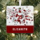 Dieses coole Mädchensoccer-Ornament besticht durch eine "Explosion" verschiedener Fußballbälle mit Maron, grauen und weißen Tafeln und grauen und maronen Sternen, auf denen man seine Trikotnummer personalisieren kann - der Maroon-Stern hat ein winziges Muster von weißen Polka-Punkten - und passt den Namen des Athleten auf der Vorderseite an. Streifen am unteren Rand des Ornaments - katz_d_zynes