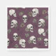 Diese in schwarzer Tinte handgezeichnet, eleganten, gotischen Halloween-Dinner-Servietten zeichnen sich durch eine wunderschöne Skulptur, Rose und Spinnennetze in Creme- und Blütentönen aus, die alle auf einem eleganten lila Hintergrund mit Maronen gehalten sind.