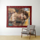 Elegant graduation photo tapestry to display on your graduate's party with a maroon background and white math formulas. Illustrated and designed by Patricia Alvarez.