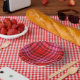 Karmesinrot Pink Kariert Tartan Design Pappteller