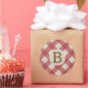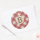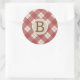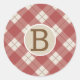 Maroon Red Rustic Country Kariert Kraft Monogram Runder Aufkleber