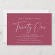 Modern 21st birthday invitations with "twenty one" in a handwritten script. Simple, text-only design with white font on red background.
