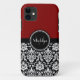 Maroon Schwarz-weiß Damask Monogram Letter Case-Mate iPhone Hülle