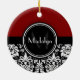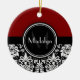 Maroon Schwarz-weiß Damask Monogram Letter Keramik Ornament