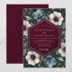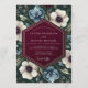 Embrace a dramatic and romantic atmosphere with this moody botanical design. A rich maroon element is set against a lush backdrop of deep greens, slate blue blossoms, and elegant white anemones. The painterly, high-contrast floral arrangement creates an artistic statement perfect for a sophisticated union.