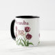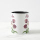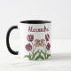 Diese Tasse umfasst sechs Tulpen, die mit Maronen und Weiß verziert sind. Diese Tasse wird ein wunderbares Geschenk für ein ganz besonderes Mädchen in Ihrem Leben machen. Der Name auf der Tasse ist mit dem Namen des Empfängers anpassbar.