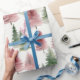 Maroon und Dark Green Pine Tree Geschenkpapier