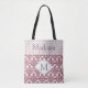 Mit unserem speziellen Monogramm Totbeutel werden alle Lächeln mit einem Maron und weißem Damast und einem Polka-Dot-Druck und einem weißen Scrollrahmen für Ihren ersten Blick verziert. Anpassen mit Ihrem Namen und Initial. Sehen Sie sich unsere komplette Produktpalette in unserem Zazzle-Shop an.